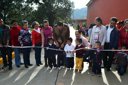 Entrega alcalde calle y apoyos a Preescolar de Xalacapan