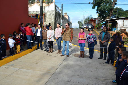 Zacapoaxtla.- La mañana de este lunes cinco de septiembre, el Presidente Municipal Guillermo Lobato Toral inauguró la pavimentación con concreto hidráulico de la calle Francisco I. Madero, ubicada en el centro de la junta auxiliar de Xalacapan, además de apoyos al Preescolar del centro, trabajos que en conjunto suman la cantidad de 339 mil 775 pesos.