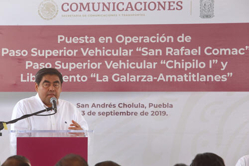 Lo anterior lo expuso al poner en operación, conjuntamente con el secretario de Comunicaciones y Transportes (SCT), Javier Jiménez Espriú, los pasos superiores vehiculares “Chipilo I” y “San Rafael Comac”, así como el Libramiento La Galarza- Amatitlanes”, obras que requirieron duna inversión total de 966.8 millones de pesos.