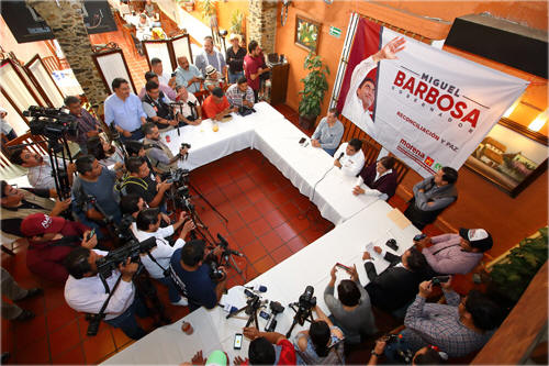 Previo a presidir el mitin masivo proselitista en esta comunidad, el abanderado se entrevistó con medios regionales ante quienes destacó: “a los dos, los llamo a la reconciliación, no sé si tengan la capacidad ellos, yo sí pues llego a este momento de mi vida sin rencores, de lo contrario no tendría capacidad para hacer absolutamente nada”, aseguró. Gobernador de Puebla, mi último cargo en la política En otro tema, tras asentar que empeñará su vida en trascender como gobernador del Estado, Barbosa Huerta refirió que este puesto no es un escalón más “es el último puesto en mi carrera política ya que no veo a la política como destino manifiesto para el cual debo dedicarme”. Barbosa Huerta reiteró estar empeñado en hacer las cosas bien y para ello se habrá de integrar un gabinete de poblanas y poblanos no de gente de fuera y además se destinará cada peso del presupuesto para los fines adecuados pues sin corrupción cada peso valdrá otro peso más. “Un gobierno austero, honesto y transparente, eso puede esperar Puebla de Miguel Barbosa”, remató. En esta conferencia de medios mencionó que durante los próximos 2 meses se desarrollará una campaña dinámica, de sinergia entre la sociedad y el pueblo. “Voy a ganar la elección con fuerza y legitimidad”, remató, al tiempo de resaltar que, en estos primeros seis días, suman más de 30 eventos con reuniones multitudinarias.
