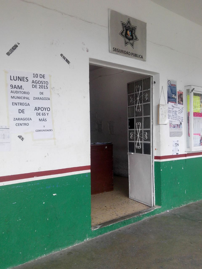 Zaragoza.- Un comando de al menos siete sujetos armados con armas de fuego y cubierto con pasamontañas, cerca de las 3:00 horas de este cinco de agosto, ingresaron a la comandancia de la policía municipal en donde luego de golpear y amagar a los elementos de guardia se robaron armamento, radios de comunicación y las charolas del cajero automático de Santander ubicado en los bajos del palacio municipal.
