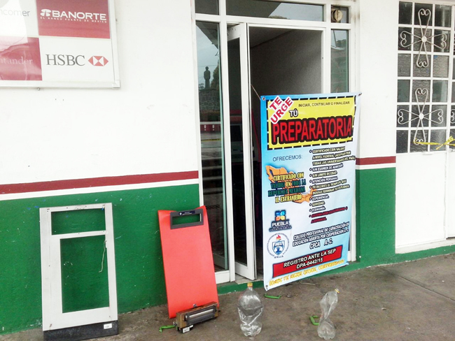 Fue en ese momento cuando el comando aprovechó que solamente se habían quedado en la comandancia dos elementos e ingresaron, golpearon con la cacha de una pistola a uno de los policías y los ataron, tiempo que aprovecharon para robar el armamento que había en la comandancia, destruyeron el cajero automático y se llevaron el dinero en efectivo.