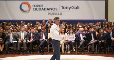 Acompañado por su esposa Dinorah López de Gali y su hija Dinorah Gali López, firmó el compromiso de adherir las ideas ciudadanas en el Plan Estatal de Desarrollo e informó que en los Foros de la capital participaron mil 632 personas que generaron más de 580 propuestas. Dijo que en seis años de gestión de Rafael Moreno Valle se logró la inclusión de todos los grupos sociales, por lo que dará continuidad a ese círculo virtuoso con la integración de todos los sectores, desde organizaciones civiles, académicas y campesinas, grupos vulnerables y representantes populares. Añadió que el máximo compromiso de un funcionario es dar resultados y trabajar de manera coordinada con todos los órdenes de gobierno, los diputados y representantes de las distintas fuerzas políticas sin distinciones por lo que agradeció la apertura y colaboración de los legisladores locales. Aseguró que no regateará para garantizar la seguridad e integridad de todas las familias poblanas y su patrimonio, y recordó varios de sus compromisos como la creación de una Subsecretaría de Atención a Pueblos Indígenas, una Coordinación de Prevención de Violencia, entre otros. Anunció que se construirán cinco Centros de Jóvenes en Progreso en el interior del estado para atender integralmente a este sector, además otorgará becas académicas y deportivas con el fin de impulsar el desarrollo de la juventud. Durante el acto protocolario, el ciudadano José Manuel Cervantes Jiménez expuso algunas propuestas en Desarrollo Social como constituir una Contraloría Ciudadana con la participación de padres de familia, robustecer la prevención de la diabetes, mayor inclusión a personas con discapacidad y oportunidades laborales para este sector, incentivar fiscalmente a empresas sustentables, entregar becas deportivas, entre otros.