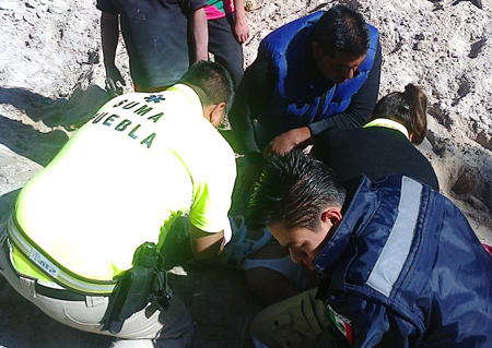Zacapoaxtla.- Elementos de protección civil y del Sistema de Urgencias Médicas Avanzadas (SUMA), rescataron a un joven de 19 años, el cual fue sepultado por un alud de arena, cuando realizaba extracción del material de construcción en el ejido Xalteno de este municipio.