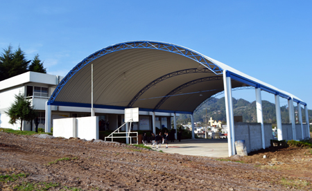 Con Participaciones 2015 y 2016, se aportaron 299 mil 396 pesos para la entrega de material para los cimientos y columnas del techado, la construcción de la cancha de usos múltiples y construcción de un muro de contención y barda en la cancha de nivel Primaria.