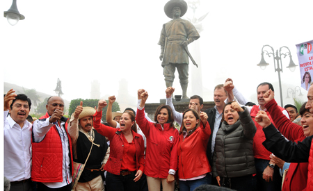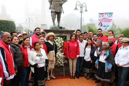 “Estoy con ustedes para rendir homenaje a nuestros ancestros, aquellos hombres valientes que defendieron a la patria, que vencieron al enemigo. Hoy estoy segura estas mujeres y hombres valientes que me acompañan habrán de vencer al enemigo que estamos enfrentando, ese enemigo es la pobreza, la desigualdad, la falta de atención a nuestras mujeres y jóvenes, el abandono de nuestros hermanos campesinos, pero ya no más”, puntualizó Blanca Alcalá.