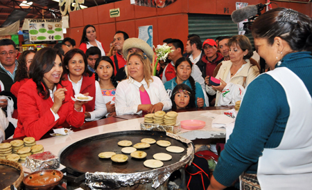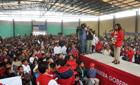 Ante miles de habitantes de la región de la Sierra Negra, Blanca Alcalá subrayó que en el PRI se ha aprendido la lección, no se puede solo prometer sin dar resultados reales: “Por eso vengo a comprometer mi palabra de que vamos a trabajar al lado de todos ustedes... esa palabra de destinar por lo menos mil millones de pesos para el campo poblano, para que les puedan llegar tractores de verdad, para que les pueda llegar fertilizante en tiempo oportuno, para que podamos modificar la reglas de operación, para que les ayudemos a organizar todas las cosas que ustedes necesitan cuando se constituyen en su cooperativa”.