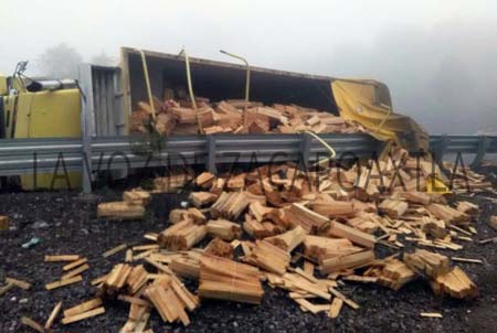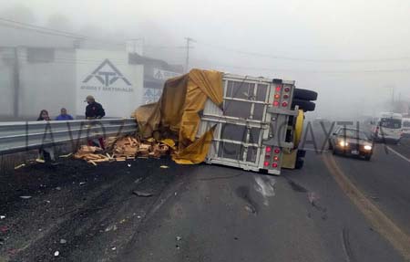 De acuerdo a la información proporcionada por las autoridades de Zaragoza, fue la tarde de este cinco de noviembre, cuando el conductor de un camión de tres toneladas con placas de circulación 849-AS9 del estado de México, tomó una curva a exceso de velocidad, lo que provocó que perdiera el control y se volcara sobre su costado izquierdo.