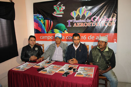 Zaragoza.- El próximo domingo 16 de abril se realizará en este municipio el primer festival de globos aerostáticos que se organiza en la sierra Nororiental, en donde se informó que se contará con globos de entre 30 y 40 metros de altura y de 25 metros de ancho, espectáculo que comentaron tiene tradición en los estados de Guanajuato y San Luis Potosí.