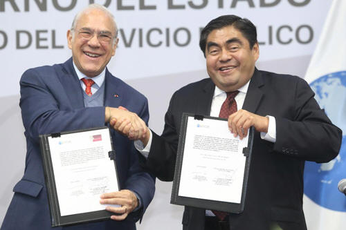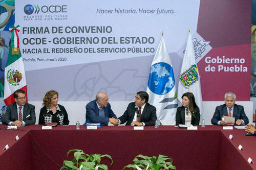 Firma gobierno de Puebla convenio con la OCDE · Ambas instituciones buscan aterrizar una mejora regulatoria en los trámites. · Puebla no solo firma compromiso con la institución sino con la ciudadanía: Gurría Treviño. 7 Enero 2020