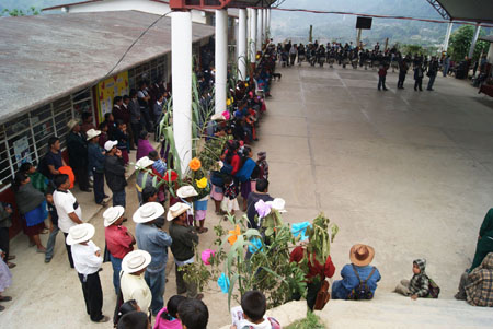 Más de 300 pobladores, entre los que se encontraban alumnos de las tres escuelas de la comunidad, recibieron a las autoridades en el camino principal, cortaron el listón y acompañados de la banda de guerra de la primaria Nicolás Bravo y un trío de son tradicional, recorrieron la obra, la cual beneficia a toda la población.