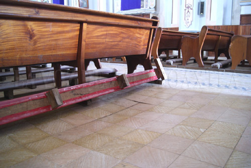 Zacapoaxtla.- La Parroquia lateranense de San Pedro, ubicada en el centro de esta ciudad, presenta cuatro hundimientos en el piso de la nave principal, sin embargo hasta la fecha no se ha llevado a cabo ningún dictamen de protección civil para conocer si este problema pone en riesgo a los feligreses.