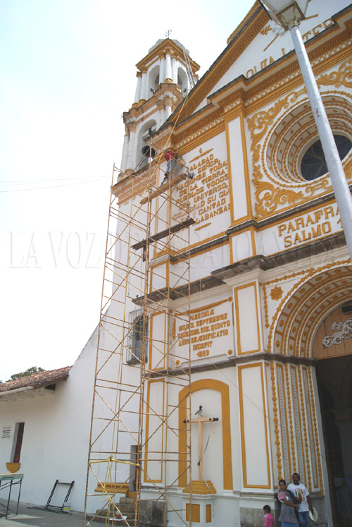 Fotos: Desniveles se presentan en el piso de la Parroquia de San Pedro en Zacapoaxtla.