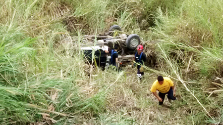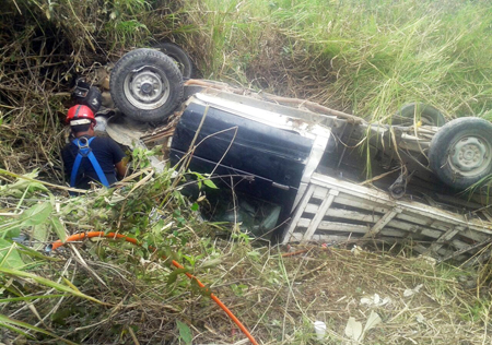 Xochitlán de Vicente Suárez.- Una persona resultó lesionada de gravedad a causa de la volcadura de una camioneta marca Nissan, la cual se precipitó más de 20 metros en el kilómetro 15+200 de la carretera Zacapoaxtla – Cuetzalan, a la altura del crucero con la vía Zacapoaxtla – Tetela de Ocampo.