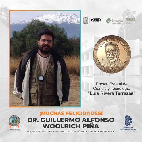 El Doctor Woolrich Piña, se ha destacado or su destacado trabajo en investigación en el área de Biología, Química, Ciencias Agropecuarias, Ciencias de la vida, Biotecnología, Medicina y Ciencias de la Salud, por lo que obtuvo la Presea que otorga el Honorable Congreso del Estado de Puebla. El objetivo de este reconocimiento es estimular el desarrollo científico, tecnológico y humanístico en el Estado, así como reconocer la trayectoria de quienes han contribuido a su fortalecimiento, a través de una convocatoria anual a Instituciones de Educación, Centros de Investigación, Empresas y Organizaciones Sociales del Estado de Puebla, en la cual presentan la candidatura científicos, investigadores y tecnólogos. La política de participación es que la convocatoria está dirigida a investigadores e investigadoras con amplia trayectoria en su línea de investigación, postulado por una institución o centro de investigación con aportaciones relevantes a una o varias áreas del conocimiento, que ha contribuido a la formación de recursos humanos, publicado en revistas internacionales indexadas en caso de ser desarrollo tecnológico con patentes y modelo de utilidad. Los resultados fueron publicados el siete de diciembre, en donde se dio a conocer que el docente e investigador del Tec Zacapoaxtla, obtuvo la Presa, quien además ha destacado a nivel nacional e internacional con proyectos científicos que han puesto en ato el nombre de este Tecnológico en países como Italia y los Emiratos Árabes Unidos.