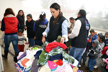 Docentes tanto del preescolar agradecieron al DIF por la donación de ropa abrigadora, sobre todo en este primer día de clases del 2015, cuando más del 50 por ciento de los alumnos faltaron a causa de las bajas temperaturas y las lluvias que generó en esta región el frente frío 23.
