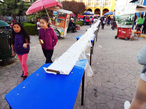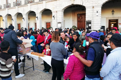 Se dio a conocer que los panaderos fueron convocados y se les pidió colaborar a cada comercio, con la elaboración de cerca de 20 metros de rosca de reyes, la cual fue colocada en el zócalo de la ciudad y formó parte de los festejos del seis de enero que encabezó el alcalde Ebodio Santos Alejo, emanado del Partido Morena.