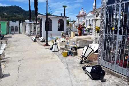La regidora Karla Bonilla Martínez, explicó que se colocaron contenedores de basura, para que las personas que acuden a visitar los restos de sus familiares, depositen las flores y desperdicios en estos lugares, además de que dijo que se inició el mantenimiento del portón de madera de la iglesia, el cual se encontraba deteriorado por la humedad.