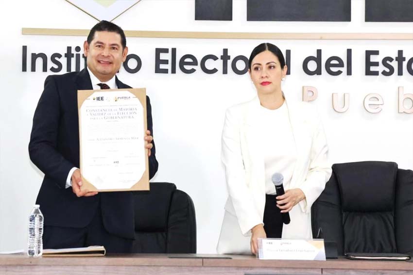 Recibe la constancia de mayoría como gobernador electo para el estado de Puebla.
