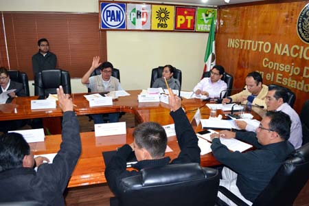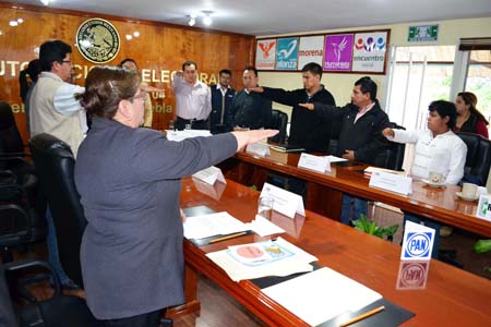 Jesús Arturo Baltazar Trujano, consejero presidente, tomó protesta a los consejeros y a los representantes del Partido Revolucionario Institucional (PRIO) y el Partido Verde Ecologista de México (PVEM) y comentó que por primera ocasión, el INE organizará una elección local, derivado de la reforma político electoral del 2013.