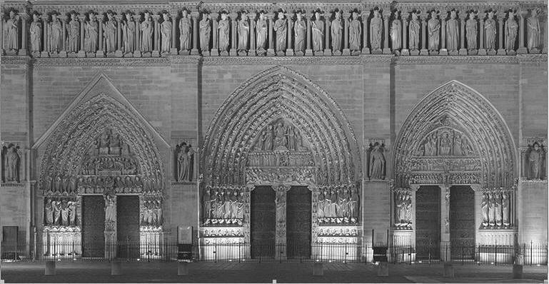 Portales principales y galería de los reyes de la catedral de Notre Dame de Paris
